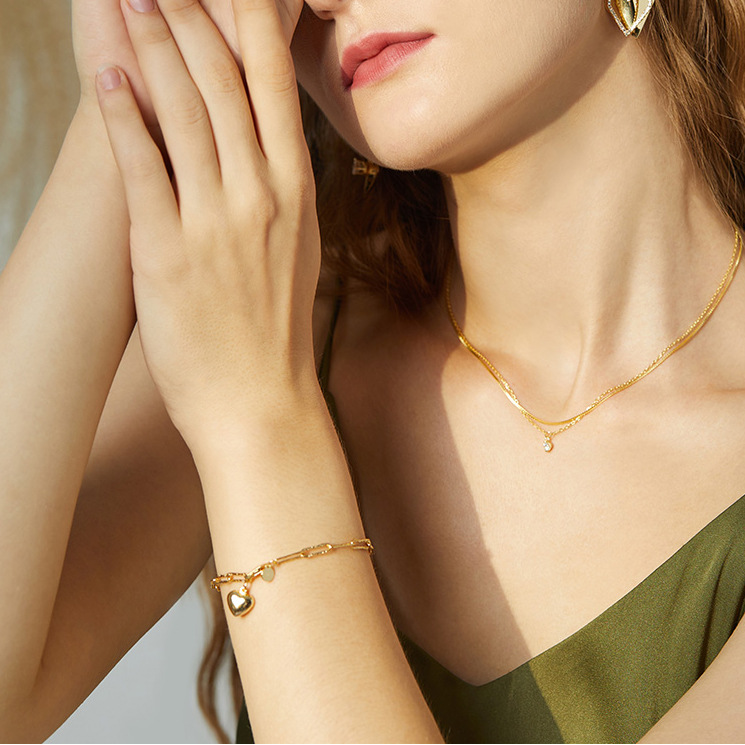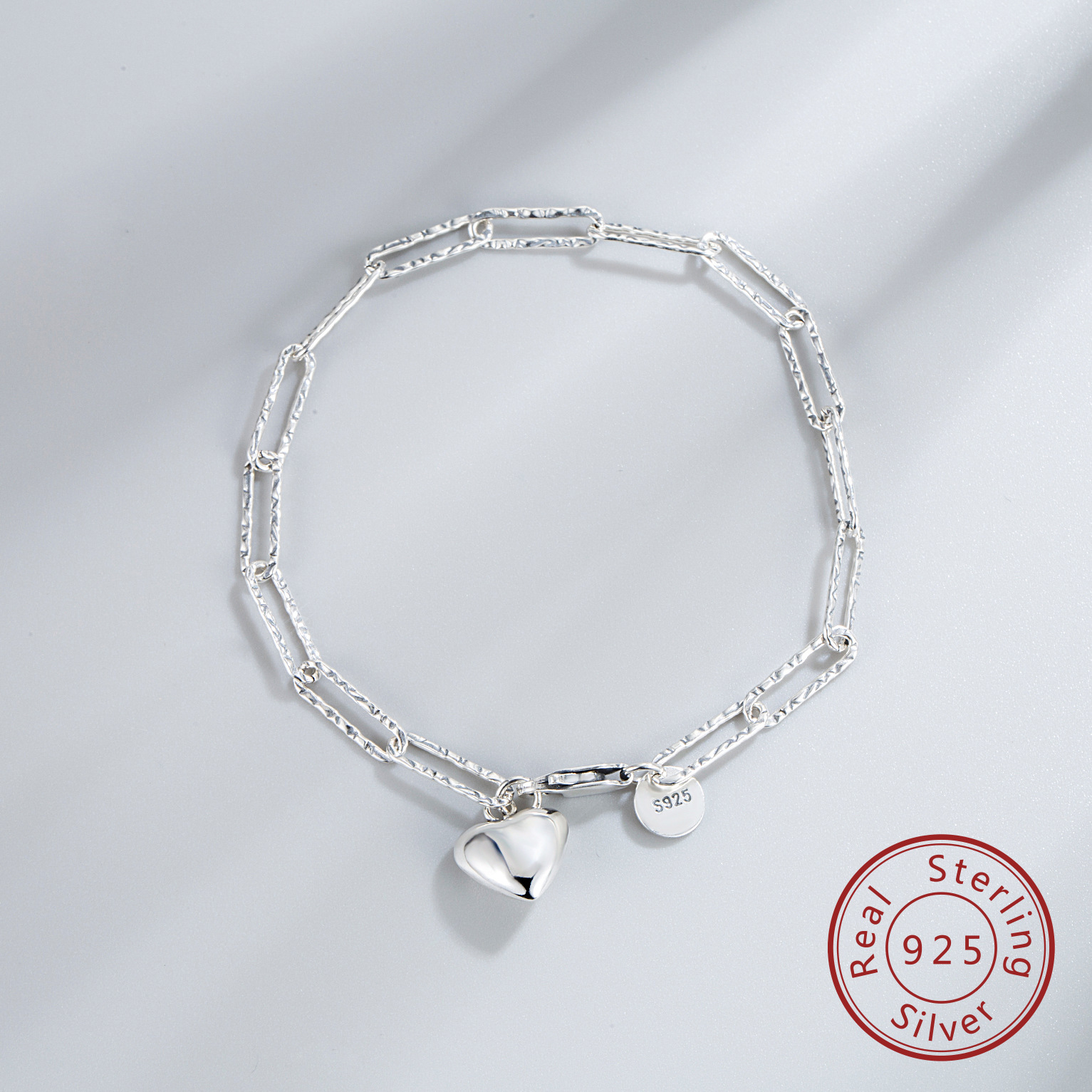 Womens S925 Sterling Silver Heart Bracelet